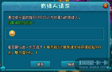 、成功发起与有缘人的聊天会话将获得一定经验、魅力奖励