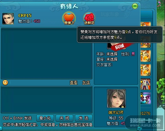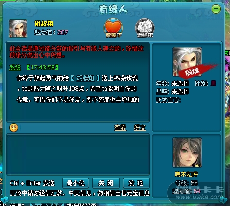 、与有缘人聊天互动,送花、献爱心可获得双倍魅力、亲密度奖励