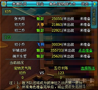 3.应广大玩家要求,增加武神坛比赛可使用阵法,阵法在进入场景后的右侧界面选择,可选择的阵法为队员在报名时的最高阶阵法。