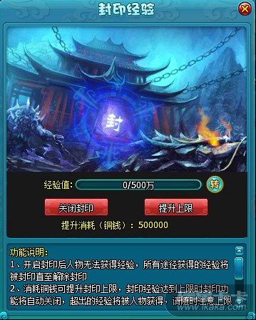 二.经验封印概述:狄仁杰:元芳,我不想升级,你怎么看?李元芳:大人,卑职有一妙物,即可让您保持现在的等级,又可让您每天不必为如何掉经验而烦恼。狄仁杰:哦?世间竟有此物?老朽竟然闻所未闻!李元芳:大人请看,此乃经验瓶子!狄仁杰:哈哈哈,元芳真乃神人也!