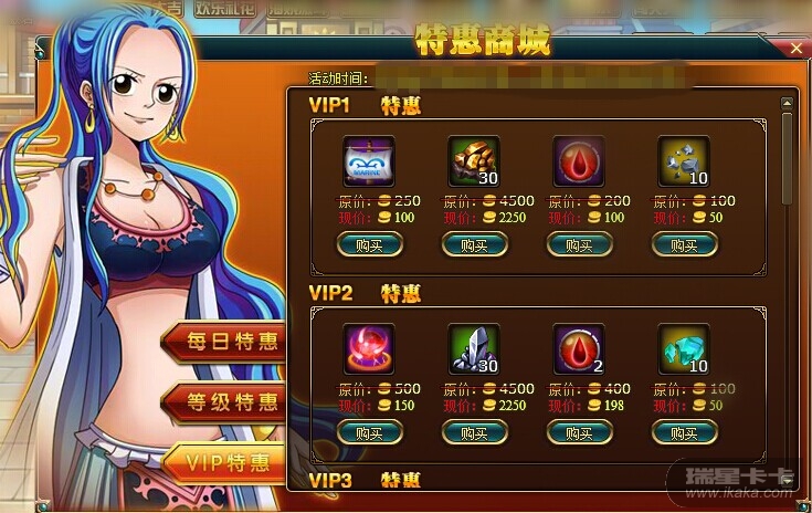 活动期间,等级特惠中商品种类随玩家等级提高而增多;