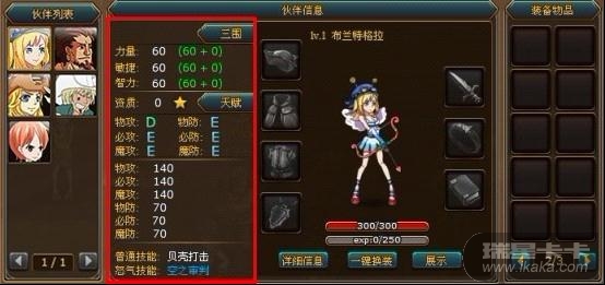 伙伴都拥有力量,敏捷,智力三种基本属性不同的属性影响不同的战斗能力: