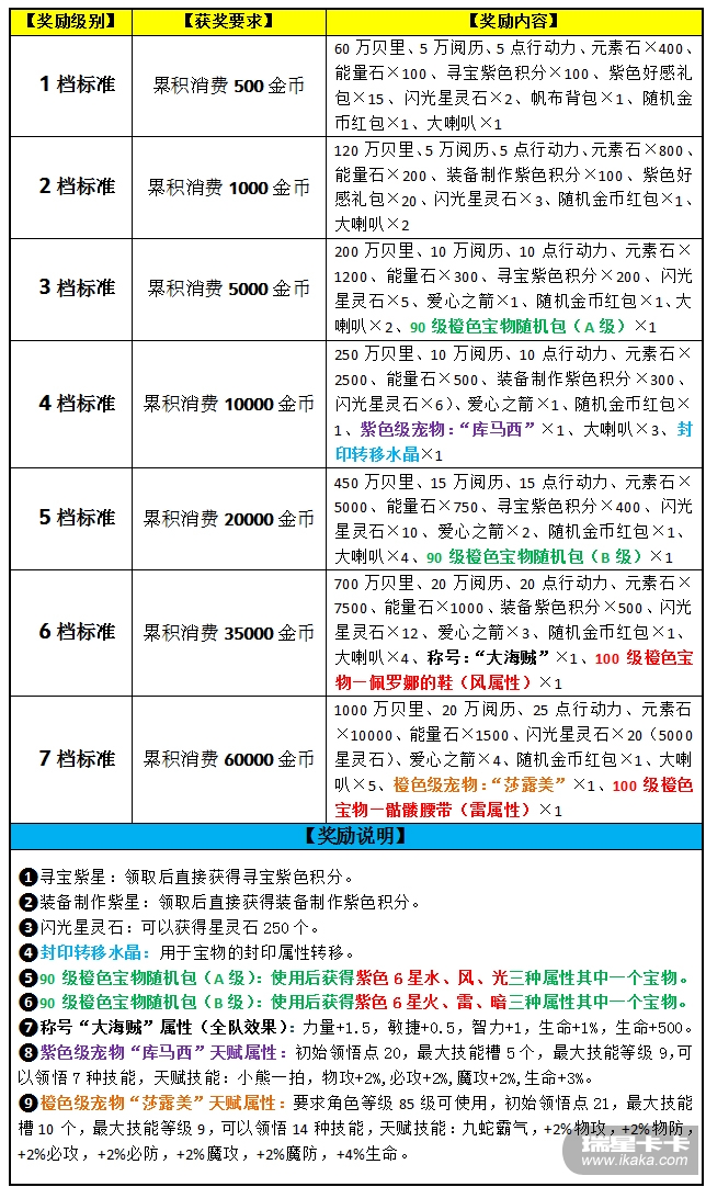 .活动期间内,玩家线上金币消耗均将进行累积,达到每档金币消耗要求,即可直接点击奖励领取按钮进行领奖;2