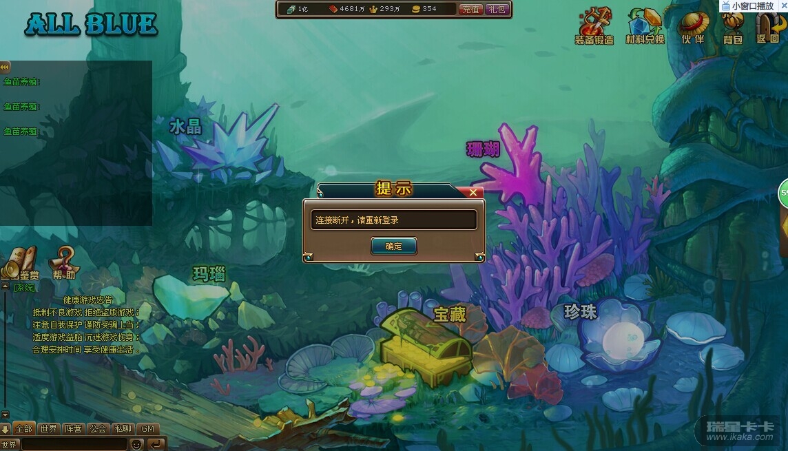 2、登录进去游戏不到两分钟,直接弹出→连接断开,请重新登录