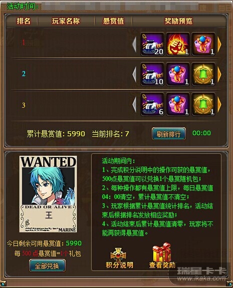 活动奖励: