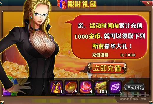 活动期间,玩家充值1000金币,即可在活动页面领取额外奖励;