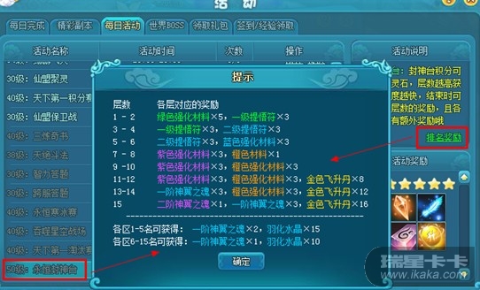 )添加封神台奖励预览:橙色材料在第几层?神翼之魂在第几层?现在不需要再苦苦追问啦,打开每日活动——永恒封神台界面,可以直接看到每层的详细奖励咯!