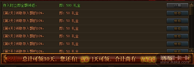 剩下的29天时间内,也可以每天领取10%的礼金奖励;