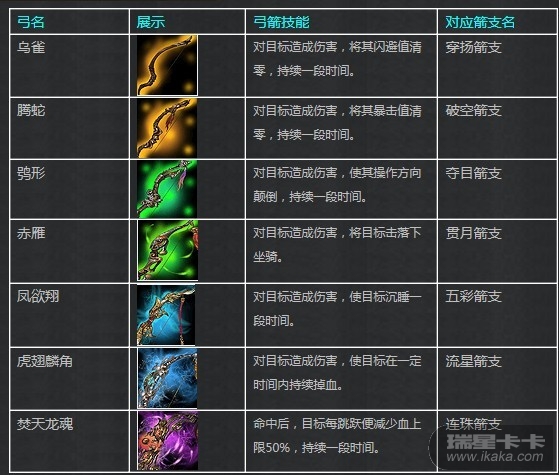 越高等级的箭支可以同时触发的弓箭技能越多;