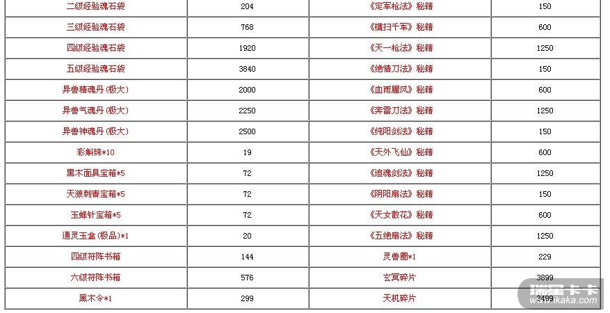 级符印箱、兽魂丹超大*5、黑木令*200、造化丹大*20、雪球*80
