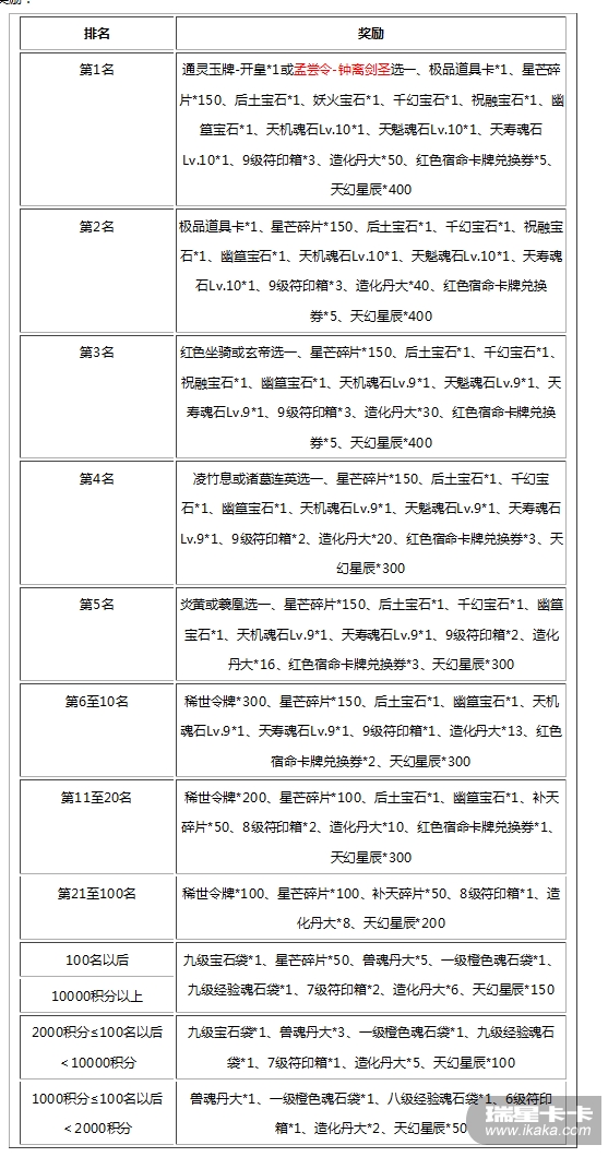 累计充值100000黄金,可获:造化丹大*20、兽魂丹超大*2、九级魂石经验*1、七彩石*5或灵兽之心*10