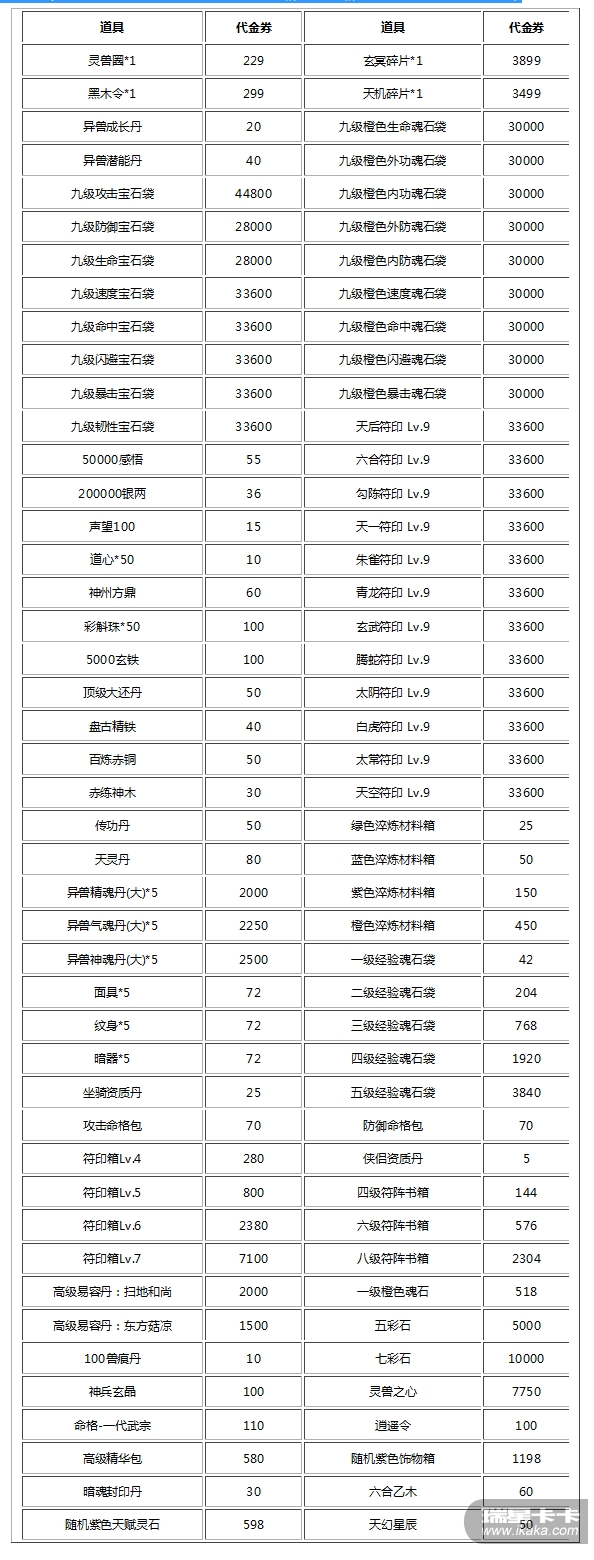 消耗对应数量的通灵珍宝,即可兑换道具商城中没有出售的珍稀道具。