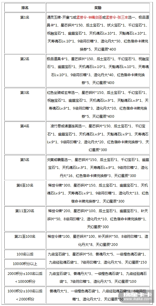 累计充值100000黄金,可获:造化丹大*20、兽魂丹超大*2、九级魂石经验*1、七彩石*5或灵兽之心*10