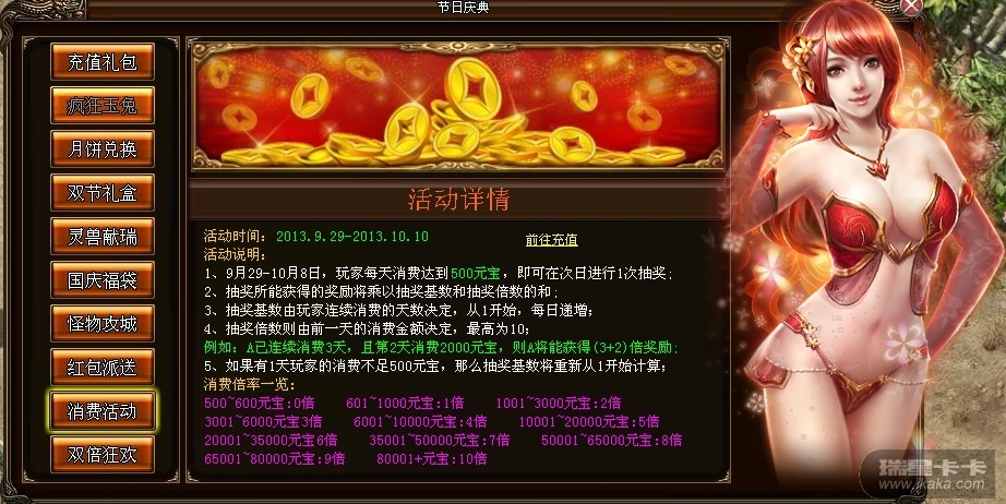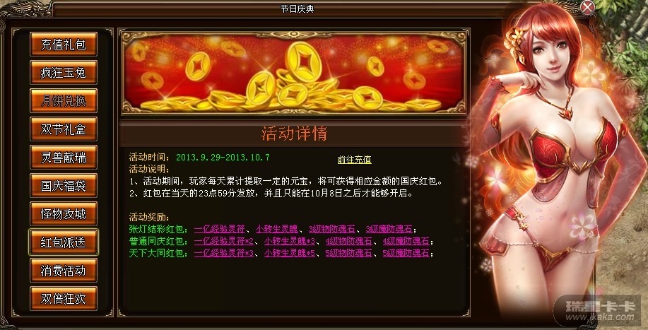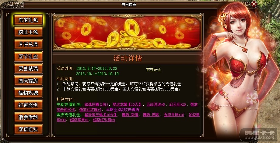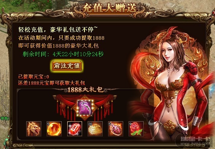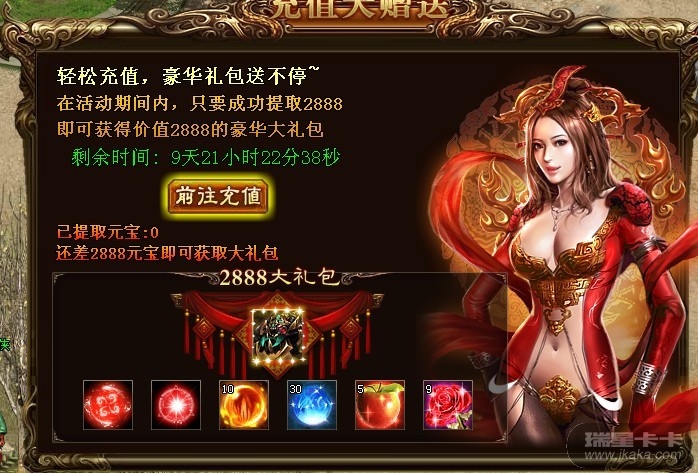 活动时间内,玩家只需提取一定元宝,即可立即获得相应的充值礼包。