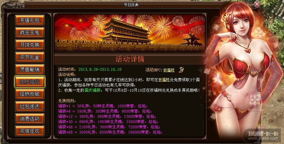 [活动] 《烈火战神》中秋国庆十大活动