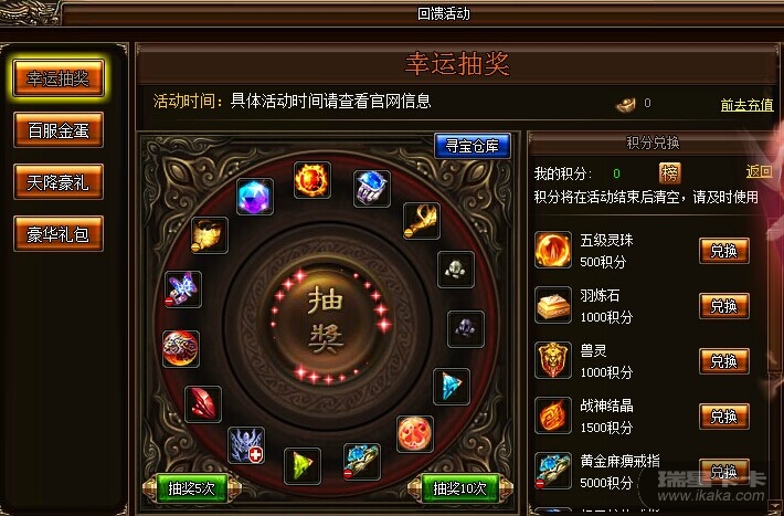 :活动期间,玩家可在幸运抽奖界面花费一定元宝进行抽奖,每抽奖一次可获得