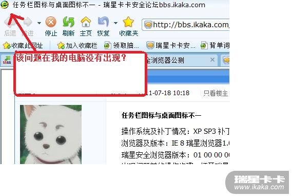 出现问题前的操作步骤:打开瑞星浏览器任务栏图标与桌面图标不一