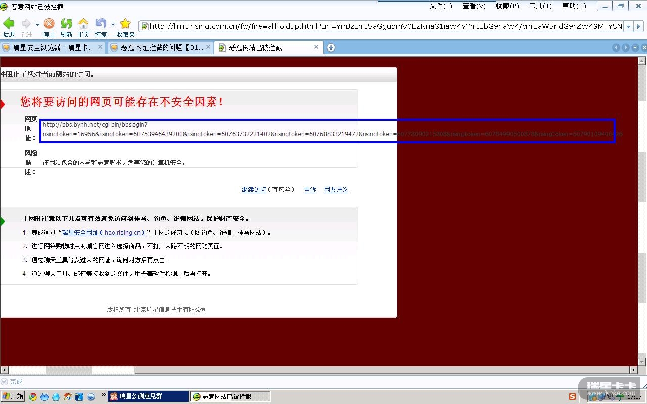 使用RE就不行,要不断的点“继续访问”然后防火墙就不断的不放行,结果到最后就变成上图所示了,当然,在点了N下后,RE也进入了和IE一样的网站界面了