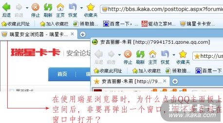 操作步骤:我在使用瑞星浏览器时,为什么点击QQ主面板上空间后,非要再弹出一个窗口,而不是在现在窗口中打开?