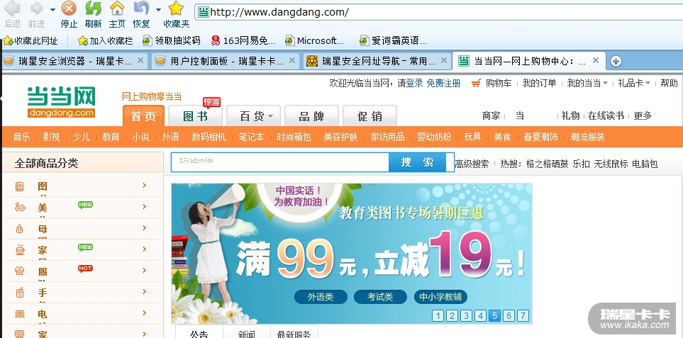 http://hao.rising.cn/页面中的“当当购物”打开当当网,排版很乱,从快速访问页中进就没有问题
