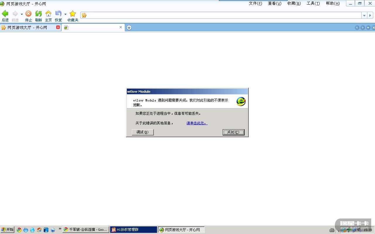 页面:如图所示,在开心网登录千军破游戏,在登录过程中关闭开心网标签,随即浏览器崩溃