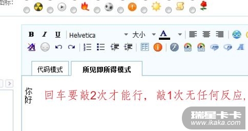 操作步骤:用瑞星浏览器,打开瑞星论坛,发帖时,打文字一定要敲2次回车键才能行,敲1次回车,无任何反应