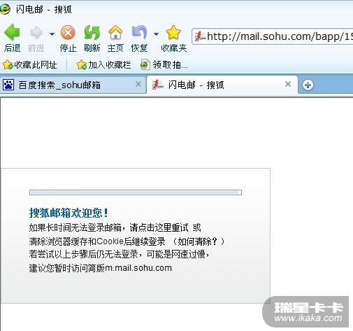 只有点“点击这里重试”或刷新才能打开邮箱界面,即使清除cookie后按上述步骤操作仍是一样,而用ie不会出现此问题。