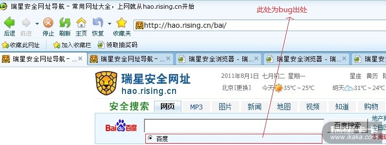 [疑似bug] 打开浏览器后,默认的瑞星安全网址导航网页搜索只能选择百度搜索,新建标签后选择瑞星安全网址导航网页也会随机出现这种问题。