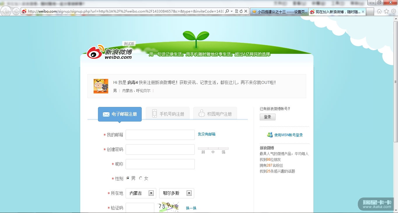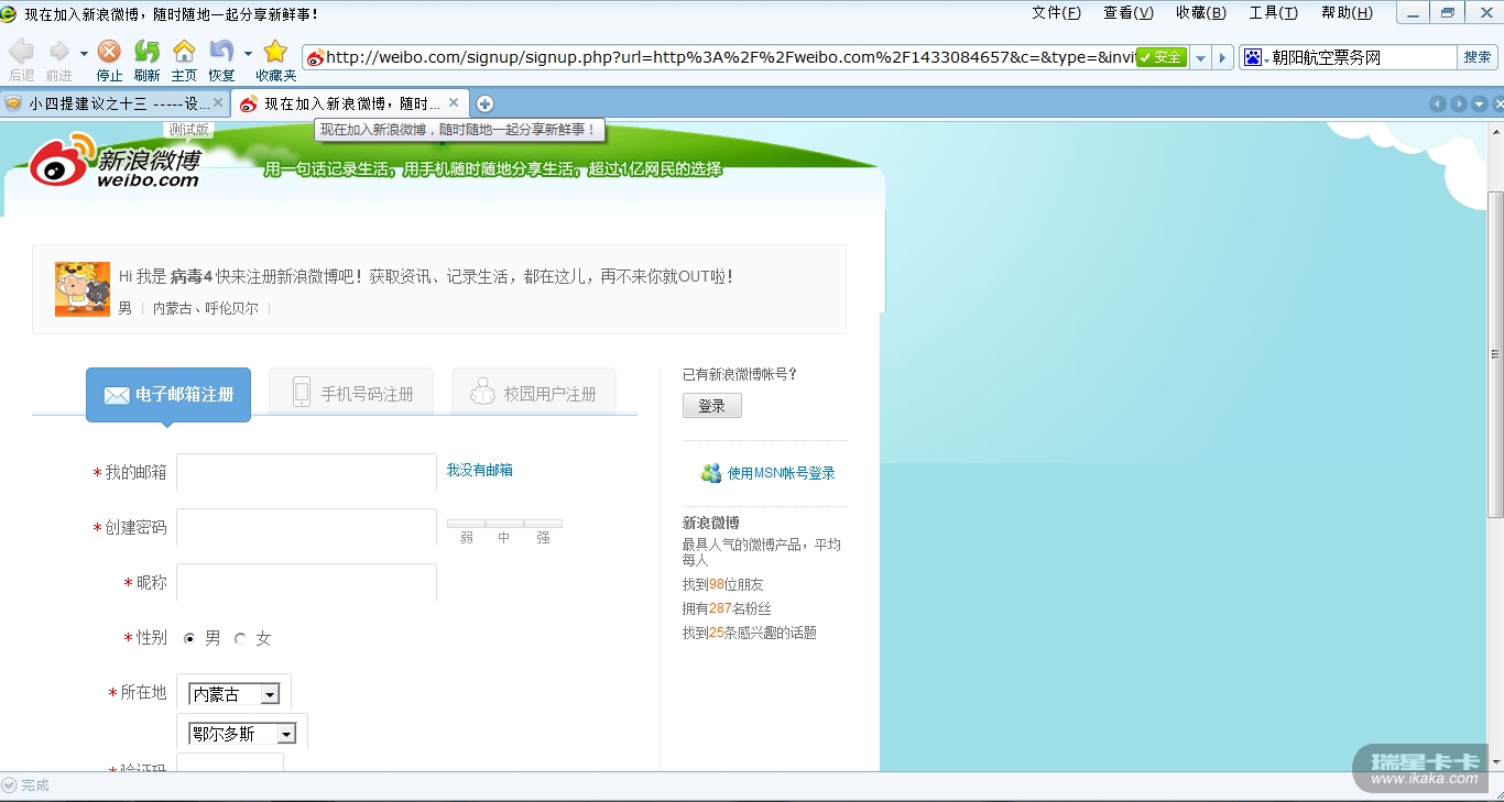 单击我签名图上的微博图标,如果未登入微博,自动转入该页面