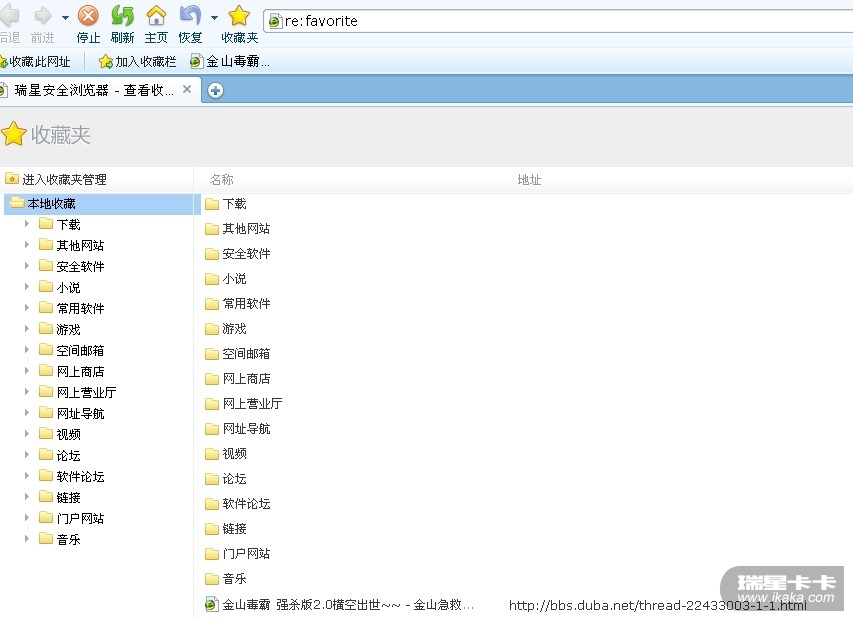 1.最左边的收藏此网址是加入收藏夹,收藏栏是快捷添加的,两个是分开的。