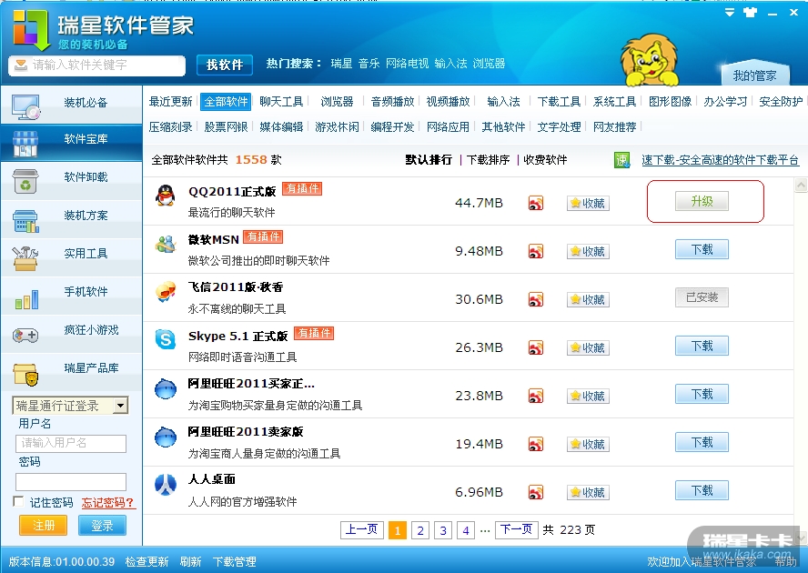 您好 请问瑞星软件管家里面怎么没有软件升级啊 只有软件卸载啊