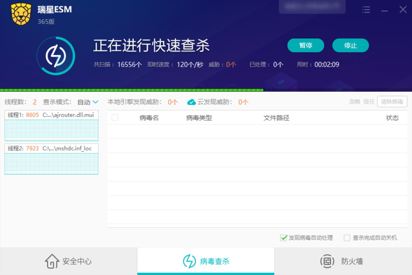 瑞星ESM365最新版本扫描线程数怎么只有2个,不开放多线程吗
