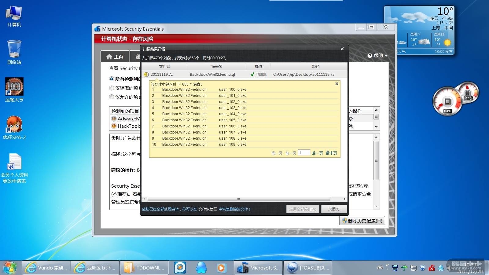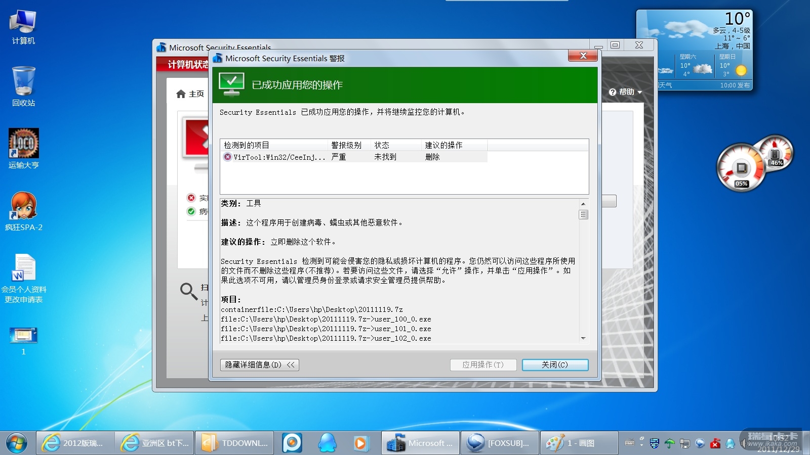 用MSE查好以后用RAV杀掉,然后点MSE清除病毒时MSE说没有找到要清除的对象