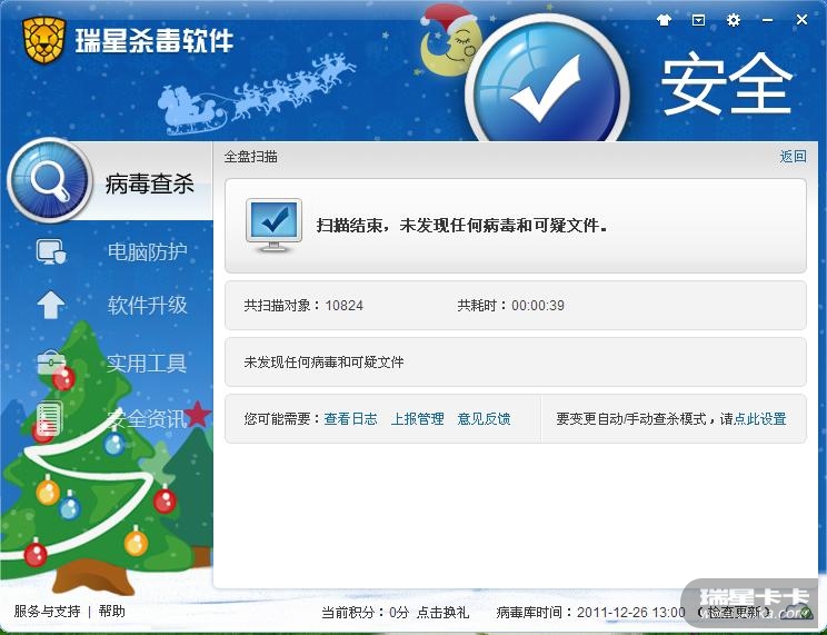 瑞星版本:昨天官方好像没升级啊,还是5号的库