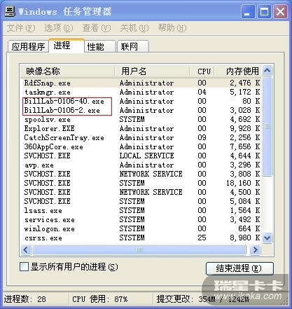 但阻止后程序依然正常加载,后面该发生的就都发生了,瑞星全部进程被干掉了。