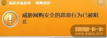 在浏览陶宝网页时,瑞星突然弹出网购保护提示“威胁网络安全的恶意行为已被阻止”(如图)