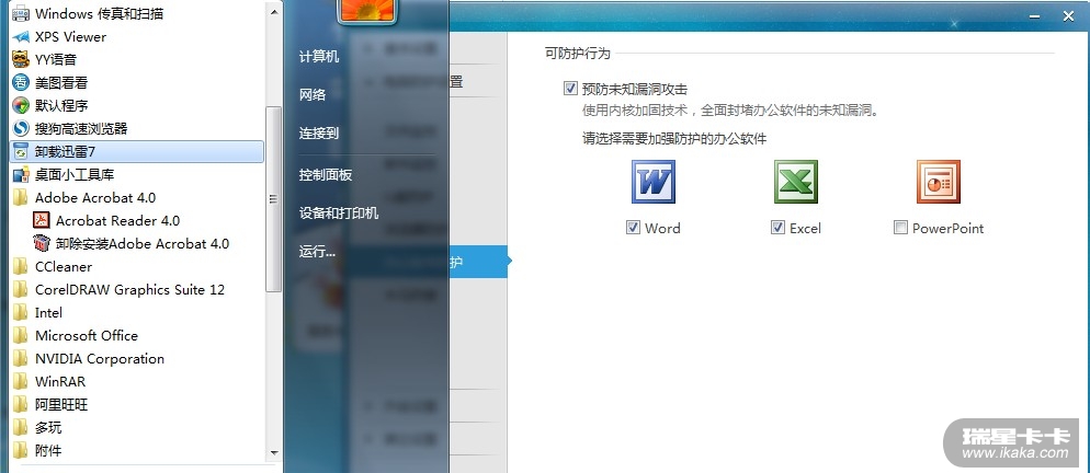 在瑞星杀毒软件设置中的,“办公软件防护”里,无法识别已安装的Acrobat Reader 4.0,