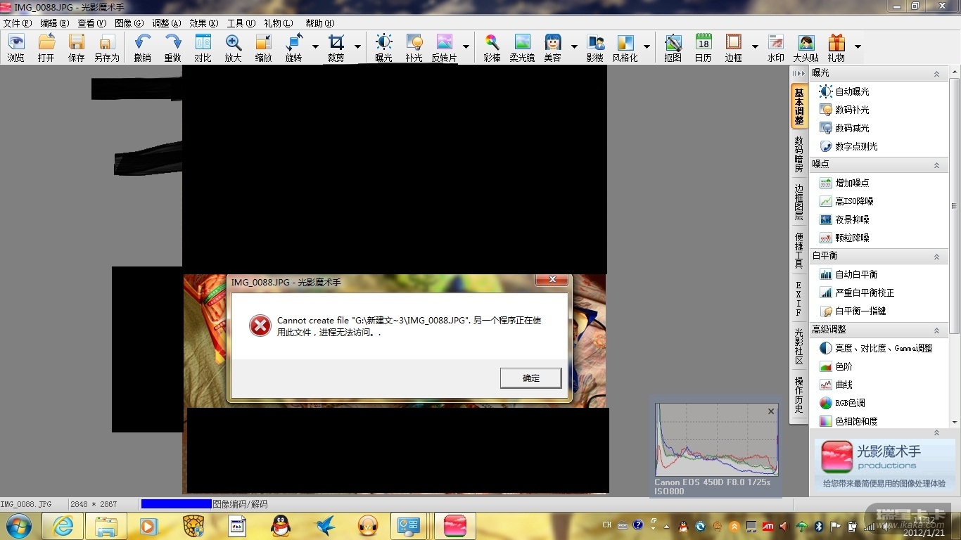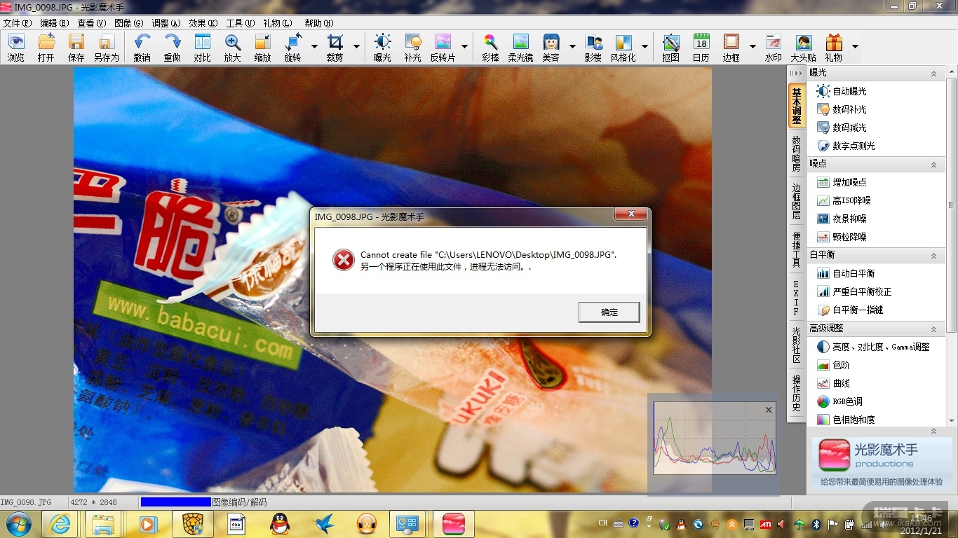 用光影魔术手编辑完照片后第一次保存时出现如下错误: