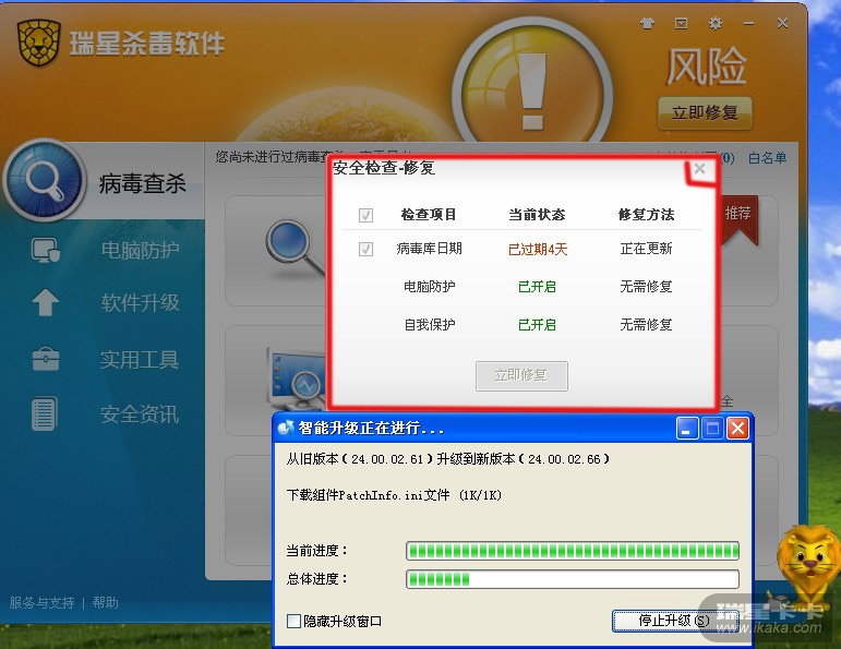 在点击立即修复之后,如果瑞星在升级状态,也能支持直接关闭掉[安全检查-修复]窗口.