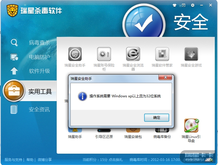 选取图中的“瑞星安全助手”选择理由是其不支持64位系统(要安装的童鞋可以参考“安全助手”板块,稍加调整即可安装)