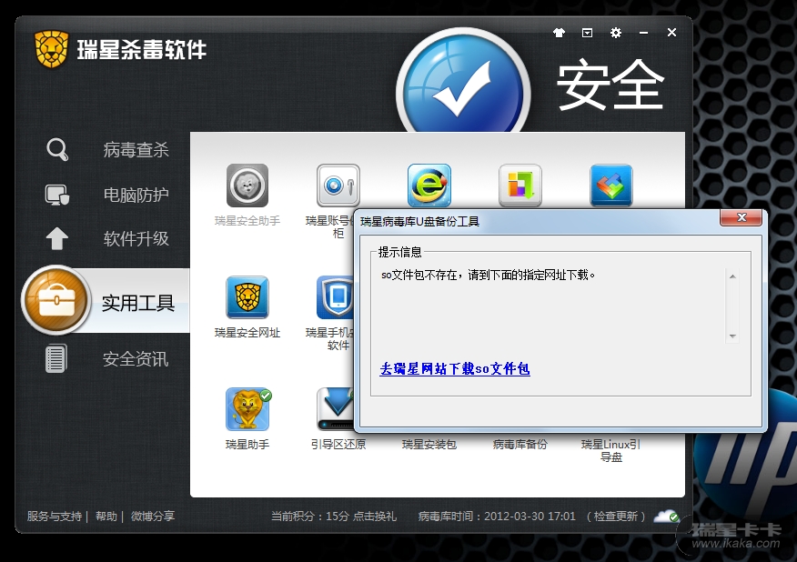 触发流程,原24.00.03.03时安装过“病毒库备份”和“瑞星linux引导盘”