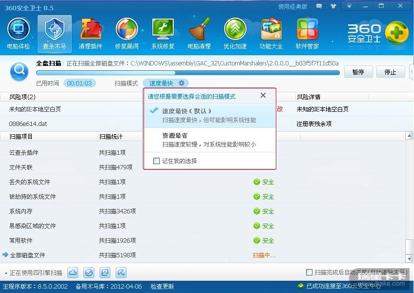 发现瑞星的 变频引擎 若支持 速度调节 就好了!!!