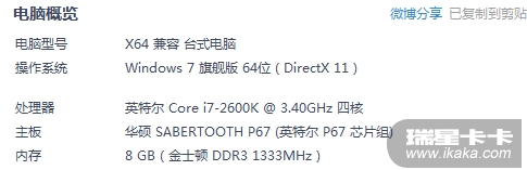 操作系统 Windows 7 旗舰版 64位 ( DirectX 11 )