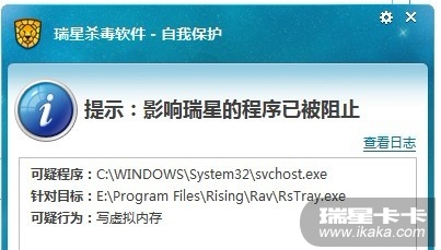 svchost.exe程序一直在写瑞星rstray.exe的虚拟内存 又查不出病毒和木马来。