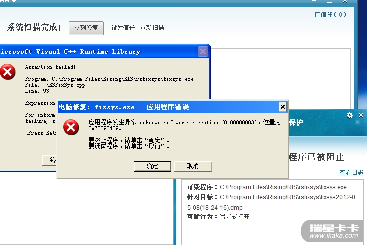 并查看瑞星全功能安全软件的安装目录下是否有.dmp格式文件?如果有也一起压缩上传至论坛。