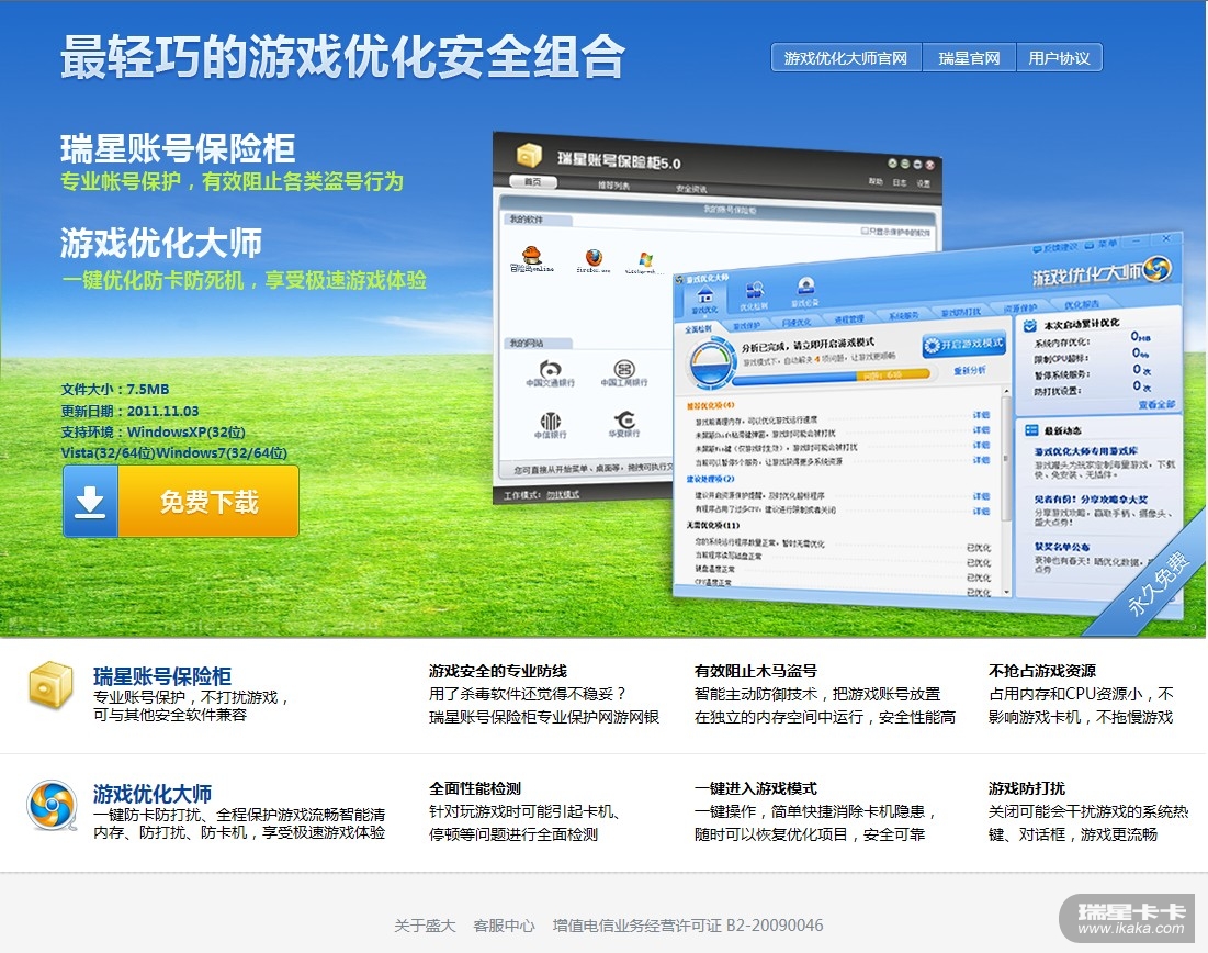 瑞星和游戏优化大师现在不是进行合作嘛!在瑞星安全助手里面添加游戏优化大师软件;(如图所示)
