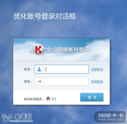 希望在瑞星安全助手里面增加账号登录对话框的功能;(如图所示)