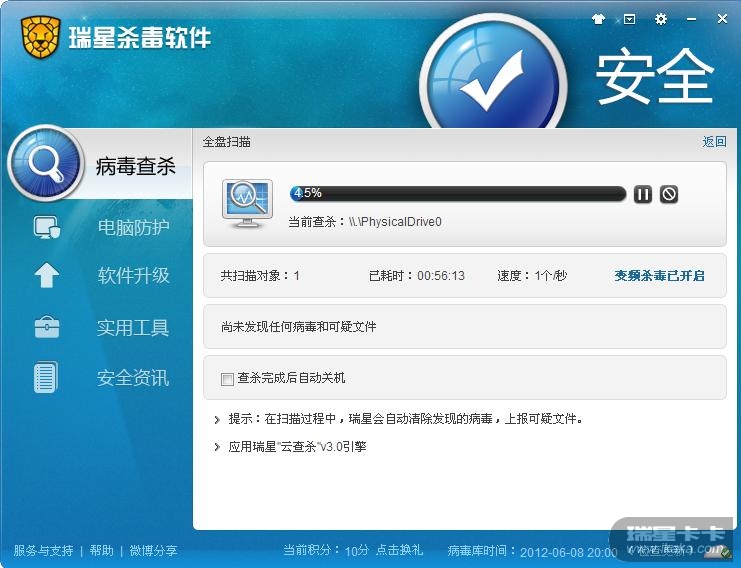 病毒库怎么是6月8号的?升级到最新版本再试试