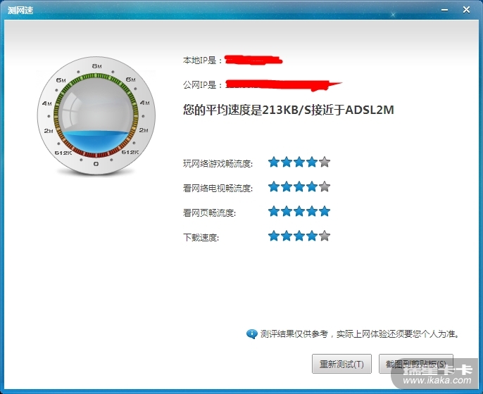 网络:铁通4M ADSL宽带(测试前没有其他应用程序联网)