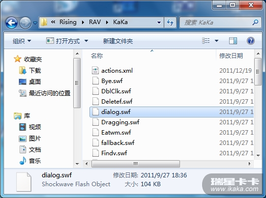 此问题同时出现在RAV/RIS 2011/2012中,有一个叫做dialog.swf的文件没有被正式加进瑞星小狮子卡卡的动画里,若不添加,当删除;若忘记添加,请补充。
